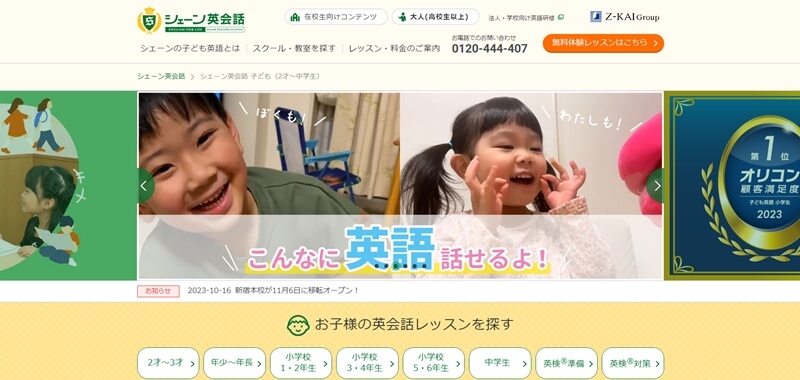 2歳からシニアまで対象にした『シェーン英会話』には、2~3歳コースと年少~年長コースがあります。