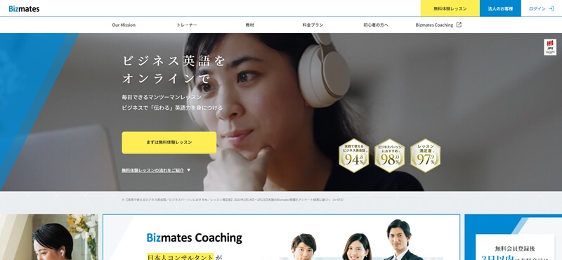 ![]() Bizmate (ビズメイツ) | ビジネスパーソンにイチオシ!ビジネスに特化したオンライン英会話 | ・スタンダードプラン 月額13,200円(毎日25分×1レッスン) 月額19,800円(毎日25分×2レッスン) |