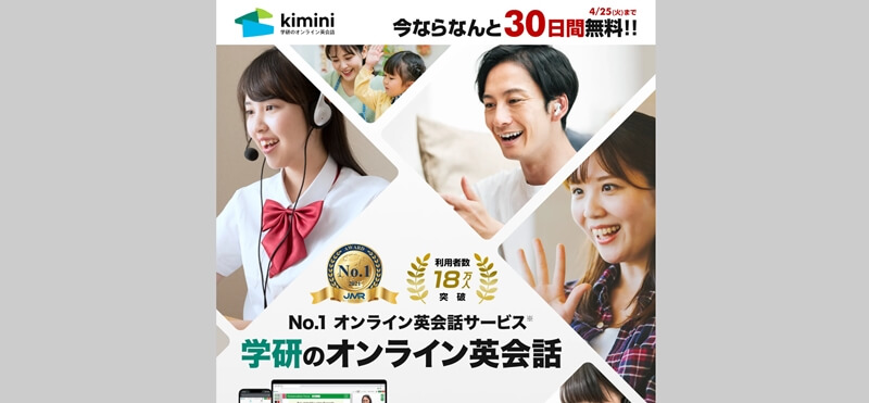 ![]() Kiminiオンライン英会話 | 幼児から中高生におすすめな学研のオンライン英会話 | ・スタンダードプラン 月額6,380円(毎日25分×1レッスン) ・回数プラン(月2回) 月額1,210円(25分×2レッスン) |