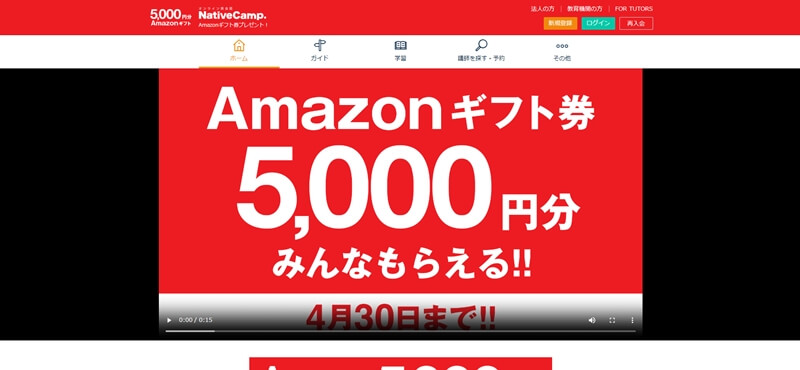![]() NativeCamp. (ネイティブキャンプ) | 24時間345日いつでもレッスン可能!会員数120万人の回数無制限オンライン英会話 | ・プレミアムプラン 月額6,480円(回数無制限) |