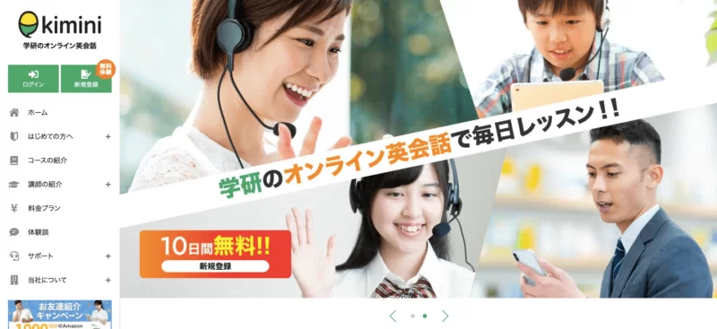 『kimini英会話』は、教材の開発出版で有名な学研グループのオンライン英会話です。子ども専用の英会話ではありませんが、幼児、小学生、中学生、高校生向けの多様なコースがあり、目的やニーズに合わせたコースが選べます。
