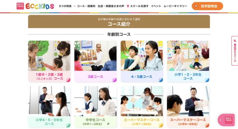 ![]() ECCキッズ | 公式サイト | 1歳半~中学3年生 | 料金は要問合せ | 40分~/週1回~ | 外国人講師 バイリンガル講師 | 全国各地の教室 | |