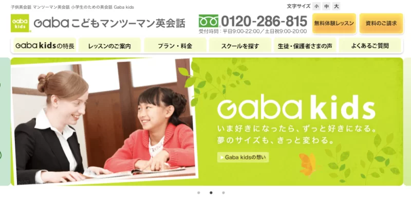 『Gaba kids(ガバキッズ)こどもマンツーマン英会話』は小学生1年生~6年生を対象としたマンツーマン英会話スクールです。中学生以上は、大人向けのGabaマンツーマン英会話に中高生向けのコースがあります。