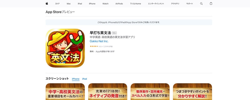 「英文法を感覚で身に着ける」を目標にしており、他のアプリとはひと味違う内容を学習できます。価格は1,220円ですが、とにかくわかりやすいと評判です。