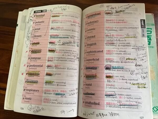 単語本は1冊に絞って、何周も擦り切れるまですれば、合格の灯が見えてきます。どこに行くにも、単語本と一緒に出掛け、すき間時間にはいつも見ているようにしましょう。
