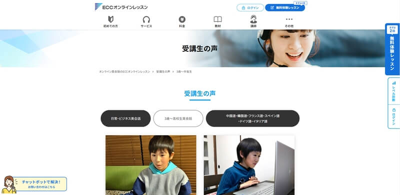 子供が利用しているのを隣で見ていましたが、やはりオンラインであると時間がある程度自由にできるというメリットがあります。ネームバリューでECCに決めましたが、とても丁寧なご対応をしていただいてとても満足しています。