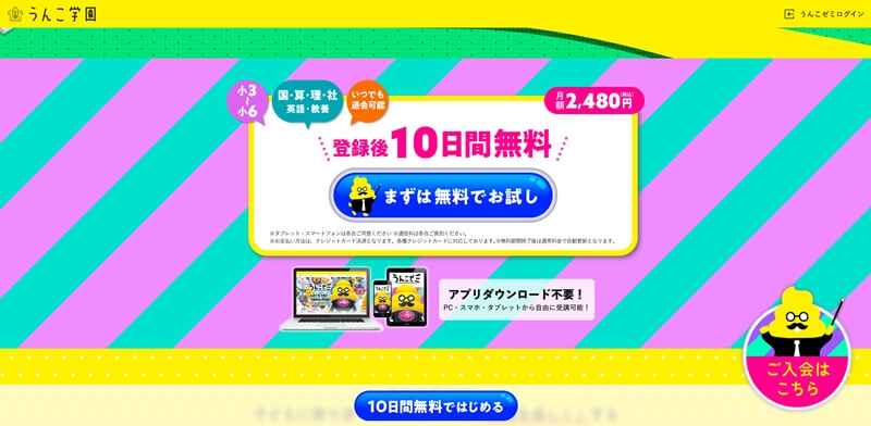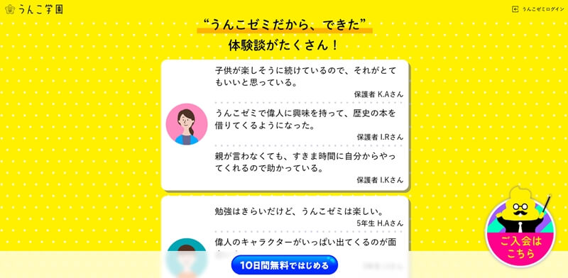 うんこゼミは10日間の無料体験ができる