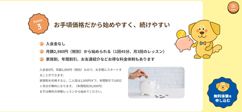 入会金なしの月額2,980円で始められる
